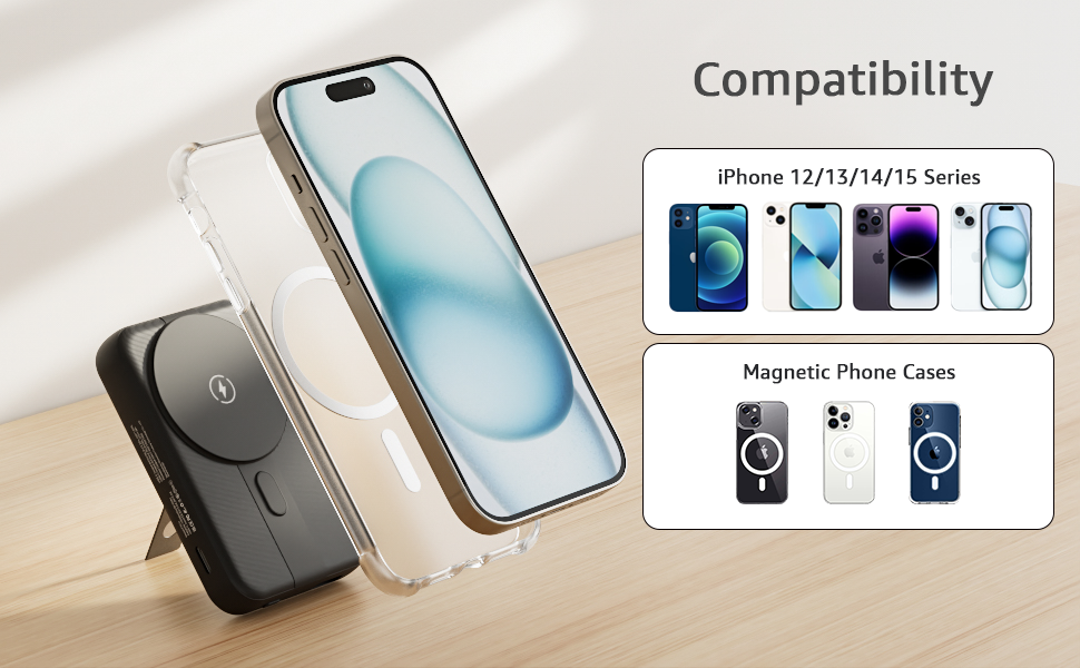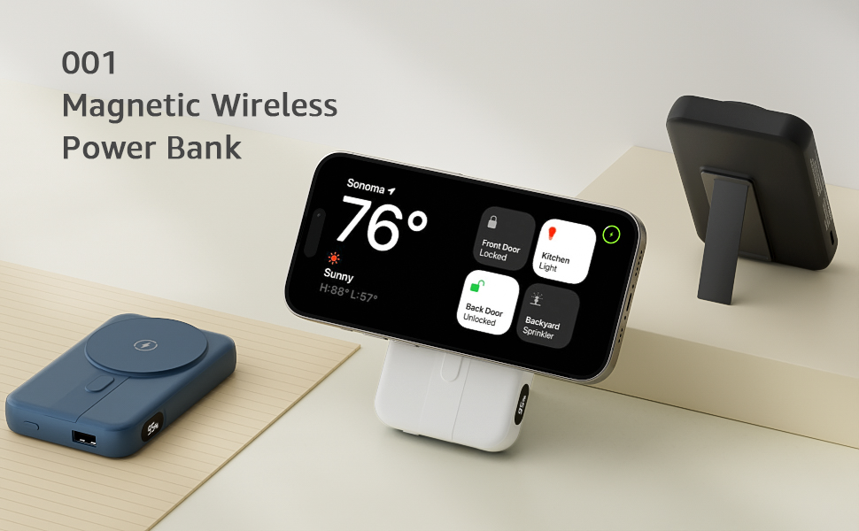 001 Magnetic Wireless Power Bank 10000mAh Foldable Stand Battery Pack Portable Charger Compatible with MagSafe for iPhone 12/13/14/15 Series